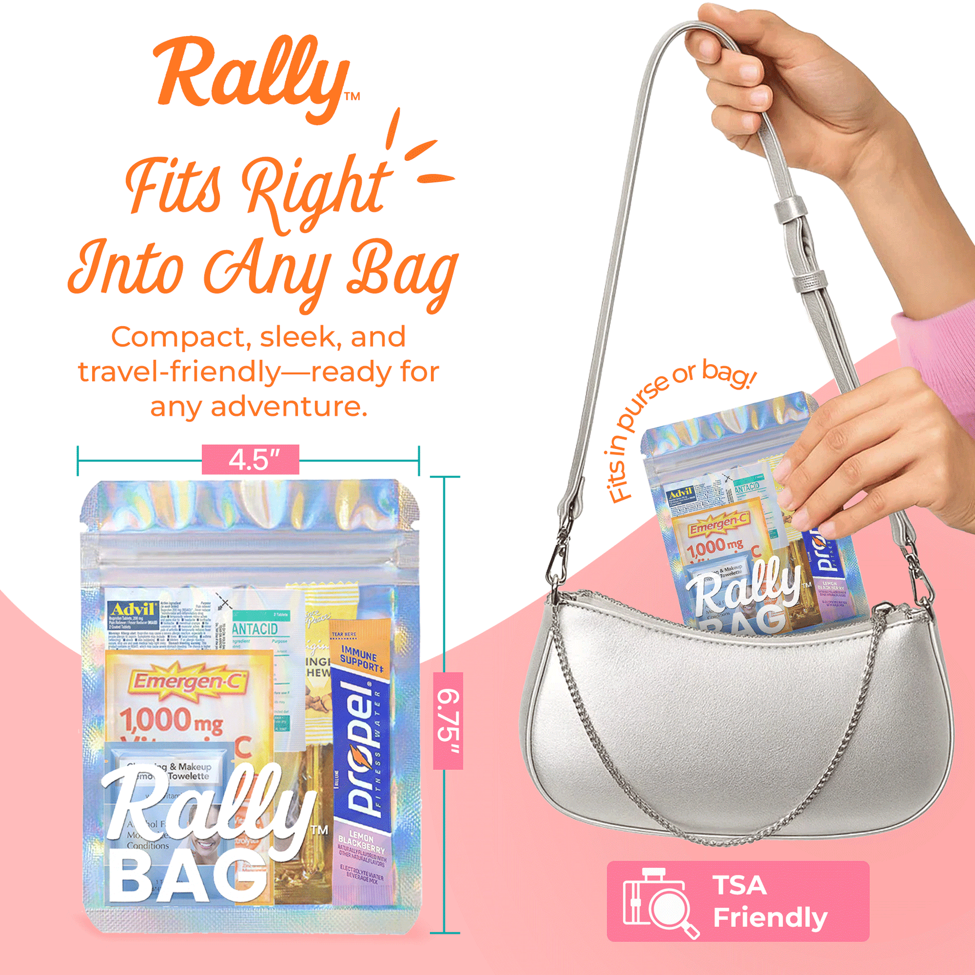 Everything you need to bounce back after a big night (or day). Each Rally™ Bag includes: