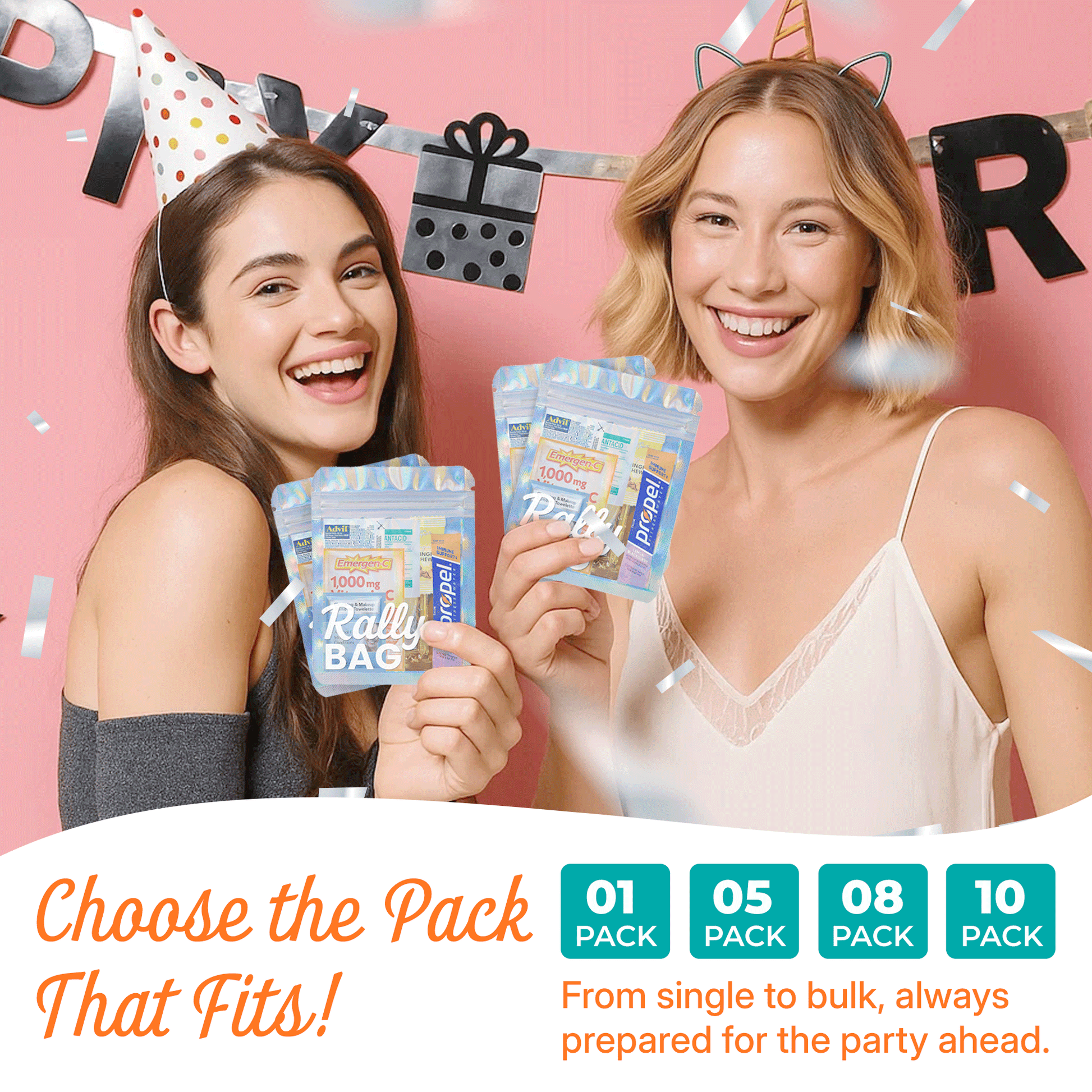 Join thousands who swear by The Rally Bag — the ultimate recovery essential for weddings, weekends, and every wild night in between.